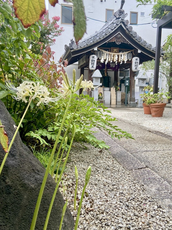 誓安寺の朝は、滝の水音とお花に包まれています。
